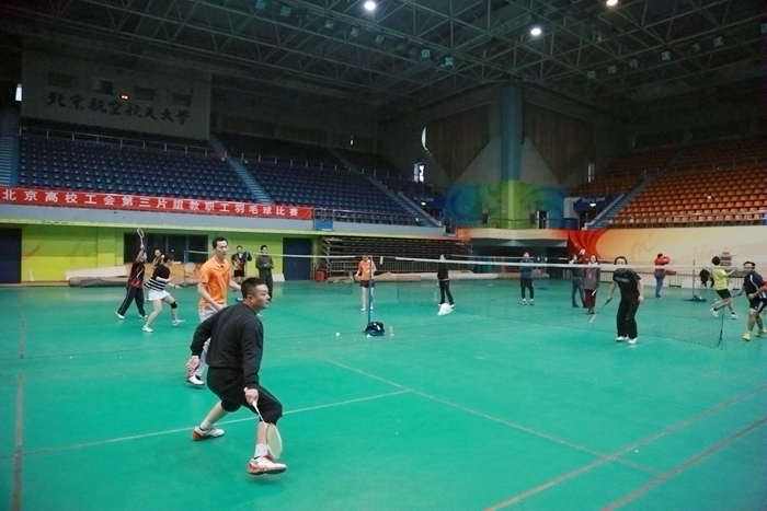 为积极备战2015年北京市教育系统“职工互助保障杯”教职工羽毛球团体赛,做好高校工会第三片组参赛队伍的选拔工作,2015年11月19日,北京市高校工会第三片组教职工羽毛球赛在北航体育馆主馆成功举行。
