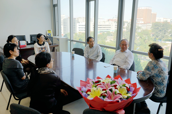 9月29日,北京市教育工会主席史利国、常务副主席刘欢一行来到学校,亲切慰问全国先进工作者、工程院院士冯培德教授。校纪委书记、工会主席纪素菊,工会常务副主席程文浩、副主席杨瑞静等工会相关同志参加了慰问活动。