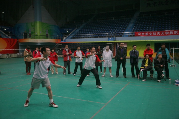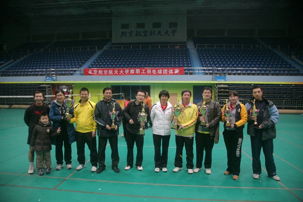 开幕式上,校工会常务副主席程文浩、总裁判长付庆鎔、航空科学与工程学院赵明分别代表主办方、裁判员和运动员做简短发言。本次团体赛每轮设置了男双、女双、混双、男双、女双五项比赛,充分体现了团队合作的精神。一些部处和学院的领导亲自上场比赛,或亲临现场助威,气氛热烈,情绪高涨,竞争中不失和谐,比赛中可见友谊。经过各代表队一整天的努力拼搏,校机关代表队取得冠军,电子信息工程学院代表队获得亚军,机械工程及自动化学院与仪器科学与光电工程学院联队、可靠性与系统工程学院并列第三名,后勤保障处代表队、能源与动力工程学院和交通科学与工程学院联队、航空科学与工程学院代表队、法学院代表队并列第四名。