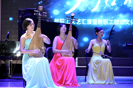 历时两个小时的晚会可谓高潮迭起。由幼儿园选送的开场舞《奔腾》展现了辽阔的草原风情,舞蹈最后,当演员们手捧洁白的哈达献给观众席就坐的教职工代表时,温馨的气氛瞬间升腾;北航教工合唱团带来了保留曲目《红旗飘飘》,魏志敏副校长的领唱满含深情,赢得场下热烈的掌声;伴随着主持人姚小玲和谭华霖的邀请,在场观看的所有校领导登上舞台,融入合唱团共同演唱《我们走在大路上》,歌声铿锵有力,激励人心,在场观众倍受鼓舞,掌声经久不息;自动化科学与电气工程学院的三句半以轻松幽默的语言抒发了身为北航教职工的自豪感;由无人机所与幼儿园联袂表演的歌伴舞《好大一颗树》歌颂了一线教职员工的默默付出;校医院用小合唱《祝你平安》为全体教职工送来健康的祝福;图书馆的舞蹈《扇花秧歌》、人文学院的小合唱《阳光路上》、教职工舞蹈队的舞蹈《喜雪》、北航夕阳红民族舞队的舞蹈《火》、北航资产经营有限公司的歌伴舞《送你一朵东方茉莉》则多角度的展现了北航教职工的人文情怀和对生活的礼赞;多单位联合表演的节目《京韵》与《精神的力量》结合了京剧、器乐、时装表演、朗诵、声乐等多种艺术形式,展现了较高的艺术水准;北航唯一取得“全国模范职工小家”称号的机械工程及自动化学院更是举“家”出动,带来了原创歌舞《浪漫的校园》,通过视频回顾了多年来学院发展的点滴历程,深深地打动了在场观众;中国民生银行“竹韵”乐团的客串表演成为晚会一大亮点,送来了一股清新的民乐风;晚会最后,由沙河校区学生工作团队、能源与动力工程学院、数学与系统科学学院、电子信息工程学院、物理科学与核能工程学院共同表演的《北航之夜》将晚会推向高潮。最后,主持人宣布了本次文艺汇演的评奖结果,胡凌云书记、纪素菊主席为各单位颁发了证书。