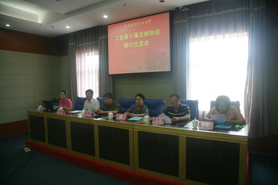 6月30日上午,校工会召开了第十届文体协会研讨交流会,北京市总工会宣教部副部长张宇晶,北京市职工文体协会副秘书长李大增,校工会常务副主席秦蓉,离退休工作处处长李鸿耀,校团委副书记支媛媛出席会议,会议由校工会副主席杨瑞静主持。