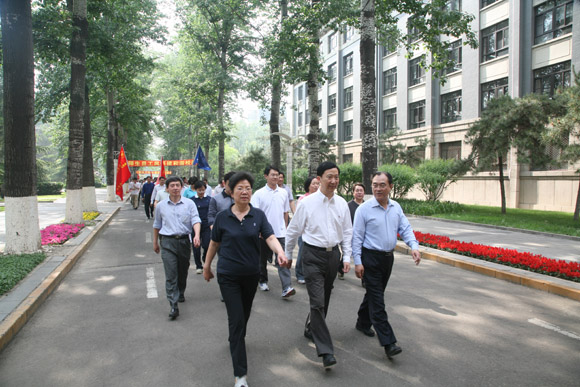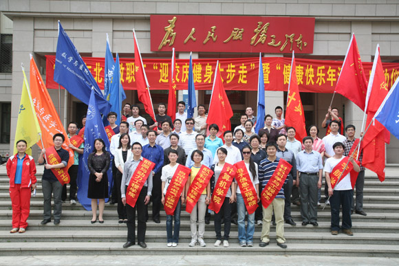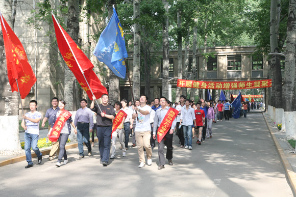 胡凌云书记,纪素菊主席,魏志敏副校长带领教职工队伍围绕老主楼进行了健身大步走活动,并与教职工亲切合影。