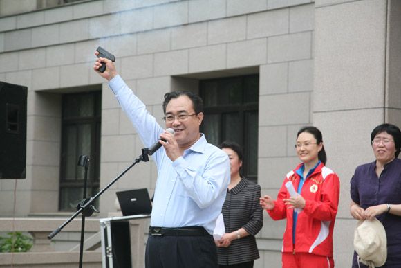 副校长魏志敏为北京伊人99师生健身大步走活动鸣枪,并宣布活动正式开始。