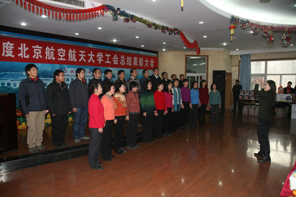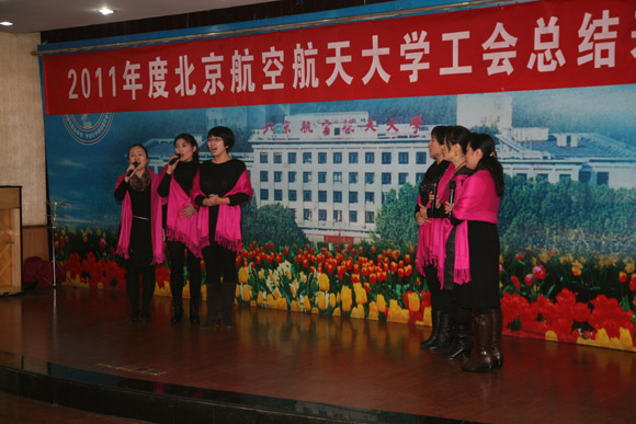 大会随后进行了精彩的文艺演出,教职工合唱团、外国语学院、太极拳协会、后勤集团幼儿园、北航附中分别奉献了风格别致的文艺节目。表彰大会在喜庆、温暖的氛围中圆满结束。