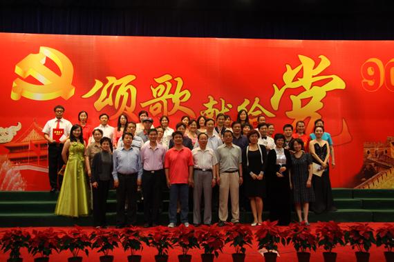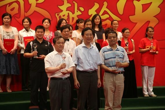 校党委书记胡凌云,党委副书记张维维,纪委书记、工会主席为获奖的单位颁发了奖杯和证书,最后,全场观众和工作人员共唱《没有共产党就没有新中国》,北京伊人99庆祝中国共产党成立90周年“颂歌献给党”教职工合唱比赛在昂扬的音乐声中圆满落幕。