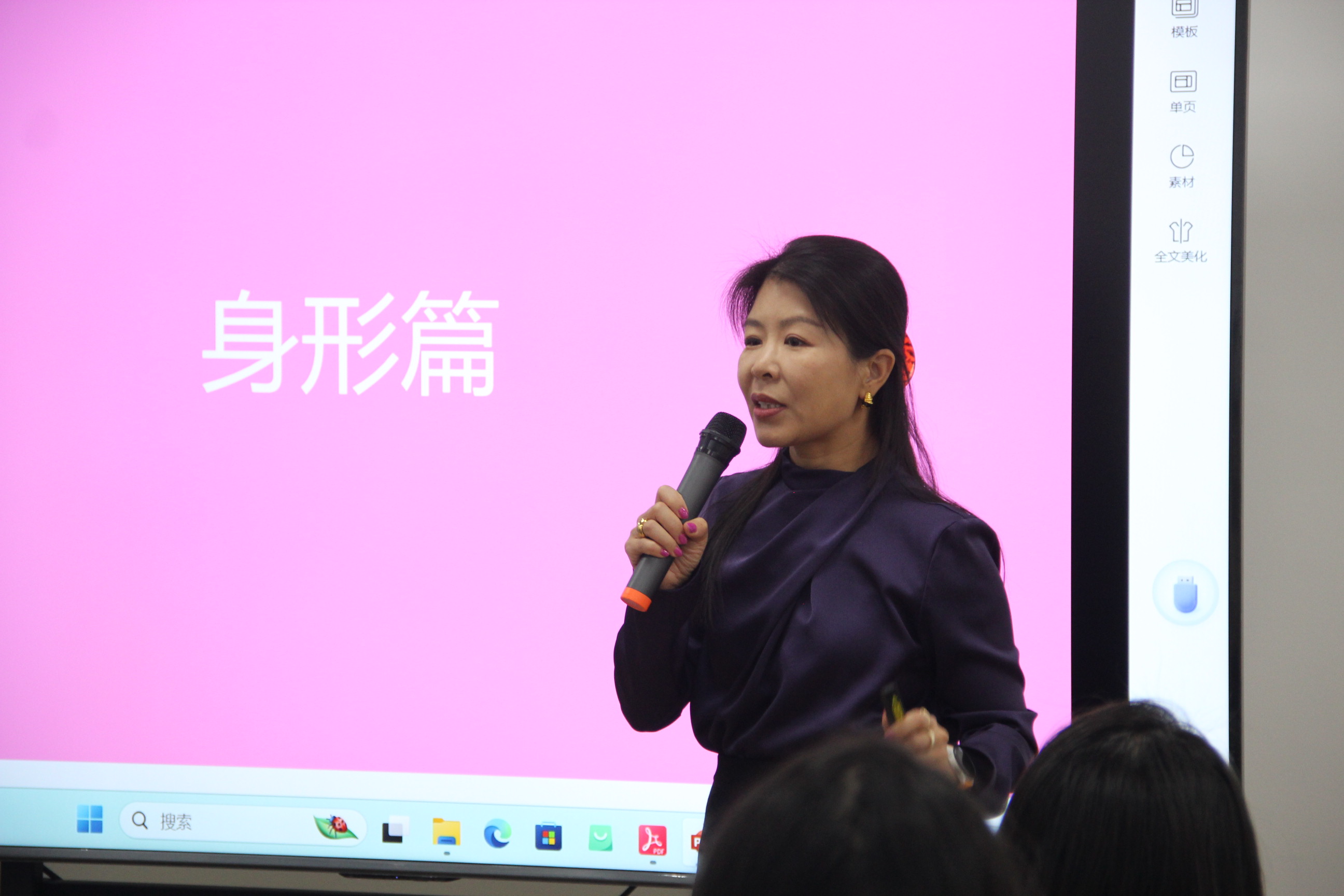 王媛媛老师讲到,作为一名人民教师,良好的职业形象是提升自信、展现精神风貌的关键,更是启发、带动广大学子尤其是女学生提升对美的鉴赏力的重要抓手。知性、优雅、得体的着装将助力职业发展,进而提升职业幸福感。